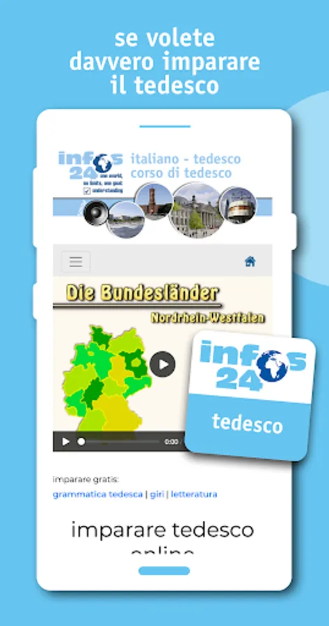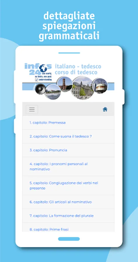 This course is a very complete and detailed presentation of the German language and is the only one that consistently follows a comparative approach, that is, it explains the difficulties of German from the point of view of an Italian speaker.