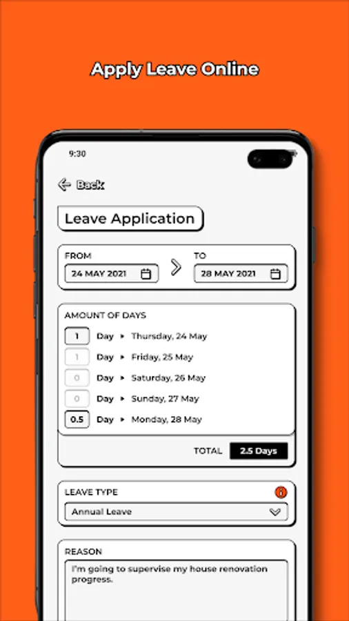 • Apply for leave- View your leave entitlement from Annual Leave, Sick Leave, Emergency Leave, Maternity Leave and many more which fall under Special Leave.