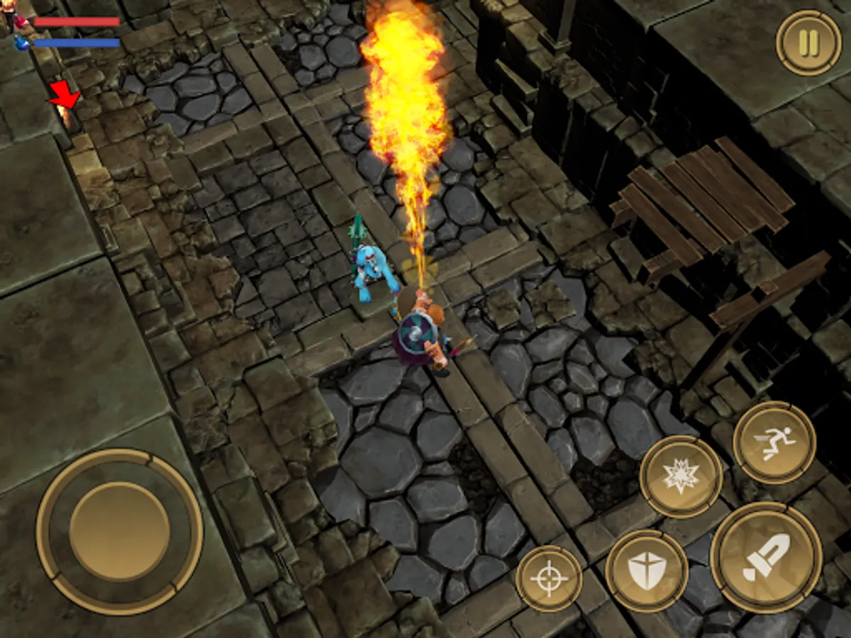 Choose one of three heroes, each with unique fighting styles and magical abilities. An immortal warrior who owns a large, two-handed sword. His archaic plasma magic has been forgotten but he easily blasts through monsters as he glides from level to level. The ancient viking warrior who is fast and has a shield for additional protection. His fire magic has no equal as he torches his way through the dungeon. The barbarian huntress uses daggers in combat and her thunder magic is incredibly powerful. She is very fast and will suit those who prefer speed.