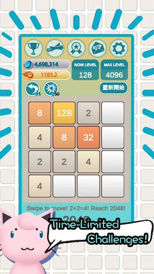 - Minimum Move mode: Reach 2048 with As Few Moves As Possible!