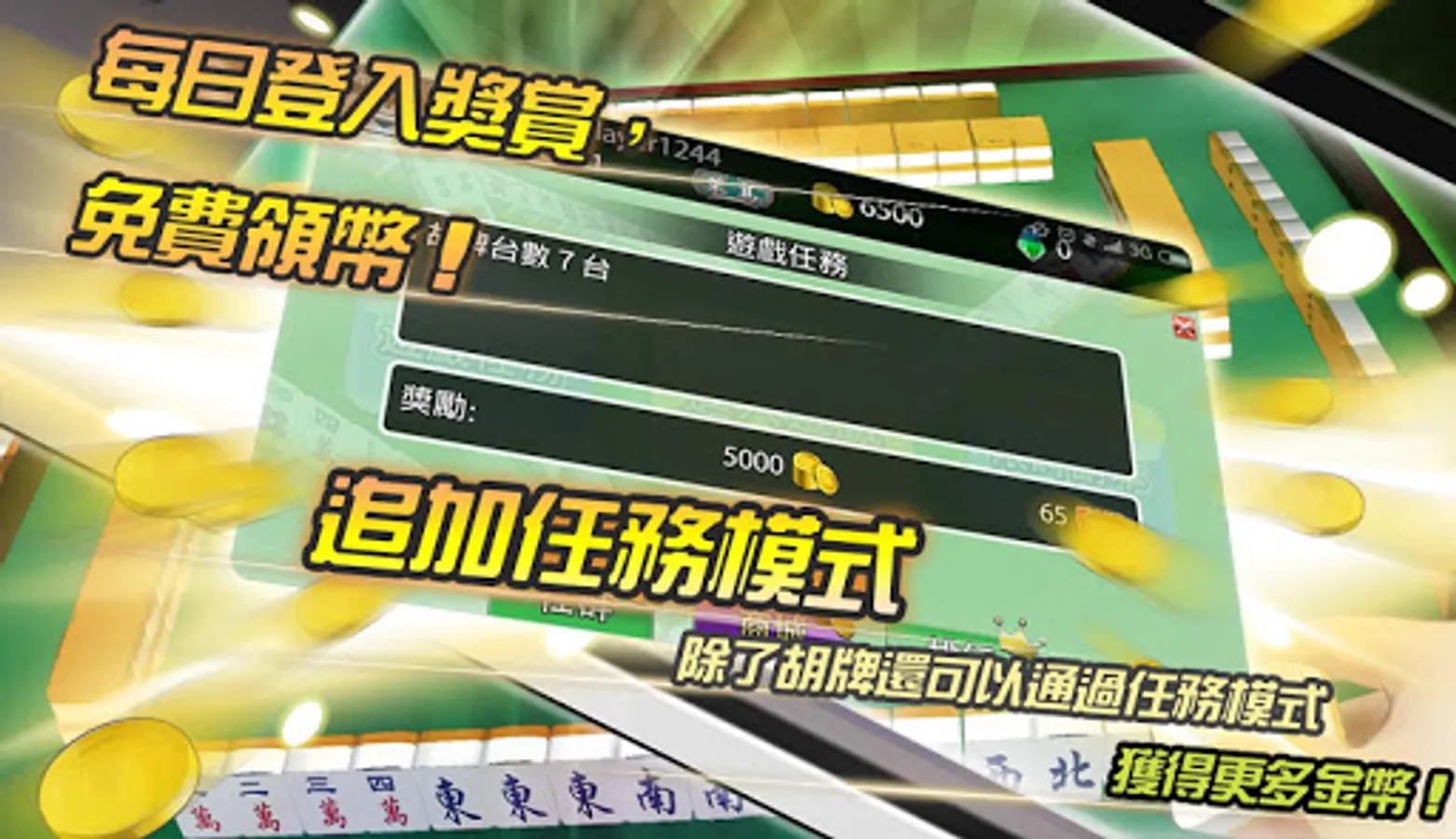 Together as much sand into the tower, gambling afraid of no money! "Taiwan Mahjong touch" with a mission mode, as long as the conditions to complete the task, you can get more coins! Come and accumulate your wealth!