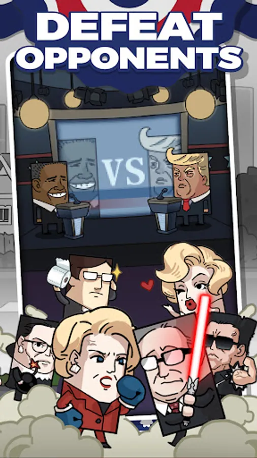 Here, you are the party leader, the next presidential candidate. Now, in this critical period, choose partners to join your campaign team, strive to get more voters, secure more states, and gain broader support. Obtain funds from donors, defeat your competitors, and eventually, you may become the most powerful person in the world. Can you lead them to money and power? Challenge yourself now. This time, you have the final say!