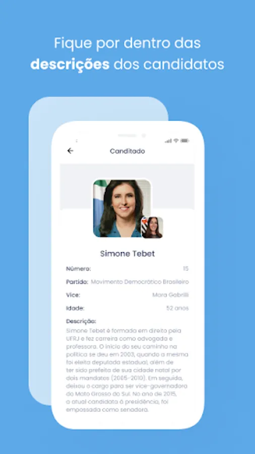 See the list of candidates and some key information about each of them, including party, number, brief biography, photo and more.