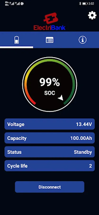 The App's main feature is to monitor the details of the ElectriBank battery. The App via Bluetooth connectivity will monitor the following information from the battery: