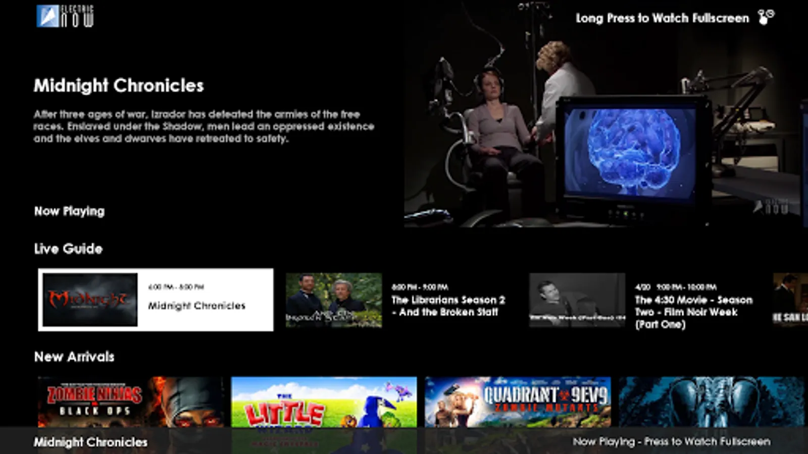 ElectricNOW is the premium app featuring content produced and acquired by Electric Entertainment. The app is owned by Electric Entertainment and features fan-favorite tv series and movies.