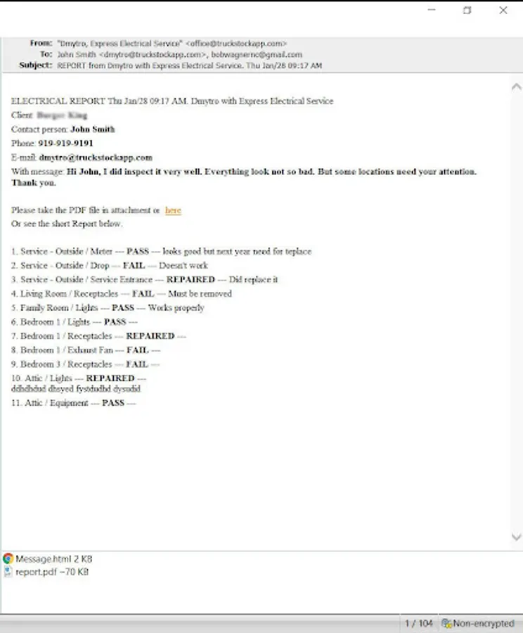 A residential electrical inspection app that can be used to create reports with pictures in order to justify needed repairs. Electrical Contractors can increase sales when using this app by up-selling inspections, pointing out code violations and suggesting needed repairs. You can also use it when selling a whole house warranty to point out items not covered or for potential buyers to be aware of possible repairs or safety hazards. Contractors can use it to save time and mistakes when doing their own inspections or estimates by sending the report right to their technicians. PDF generated reports can be emailed right to Realtor's, property owners, property managers or technicians or they can be printed or stored in the cloud for later use. Including a professional looking report along with your estimate of repairs will boost a customers confidence and increase your chances of being awarded the job.