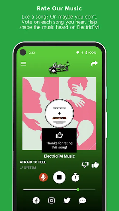 * Rate the music heard on ElectricFM