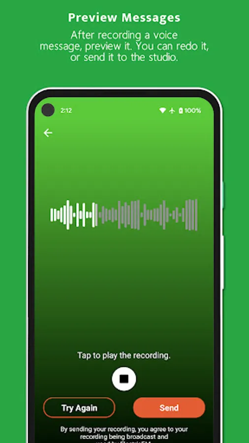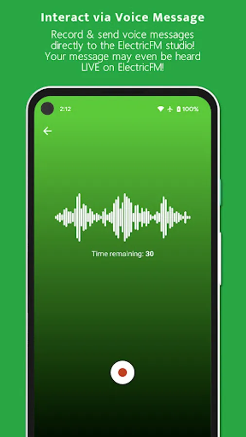 * Record and send audio voice messages to the ElectricFM studio