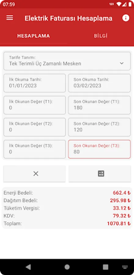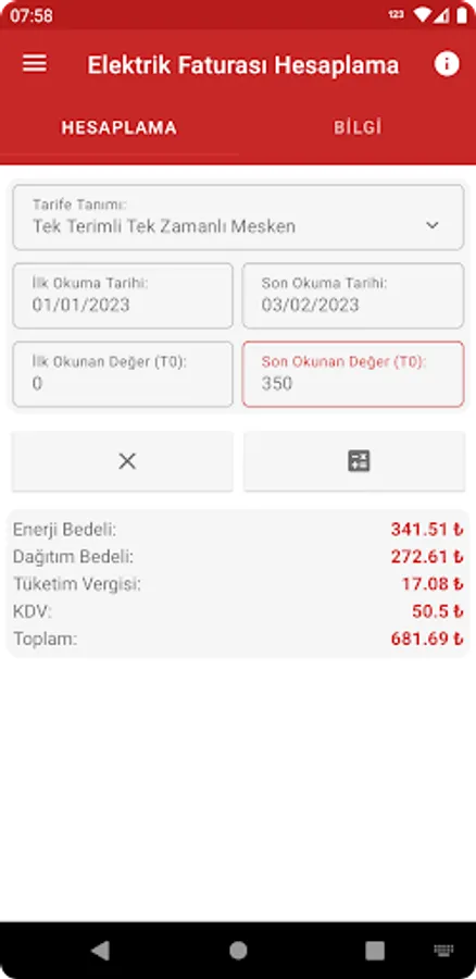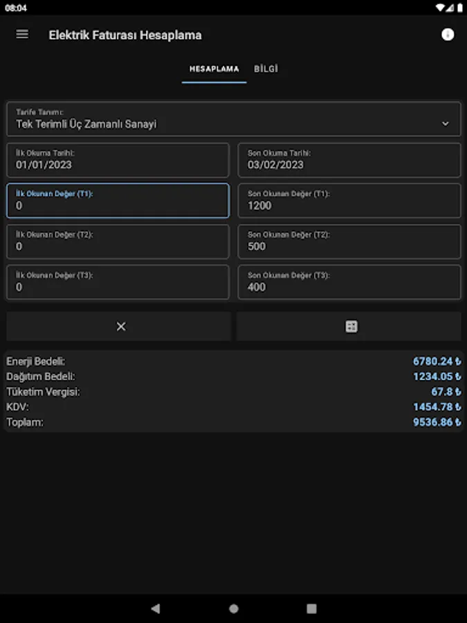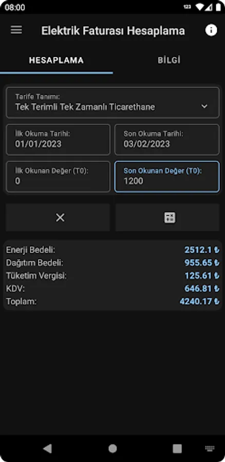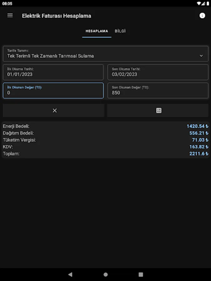 With the Electricity Bill Calculator application, you can calculate electricity bills with single-term LV tariffs.