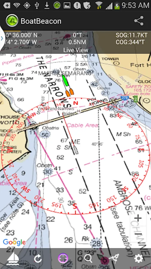 Live Map view with compass overlay which rotates with you so you can look in the direction of the ships on the map to locate them. You can also tilt the map to get a 3D perspective by dragging upwards with two fingers.