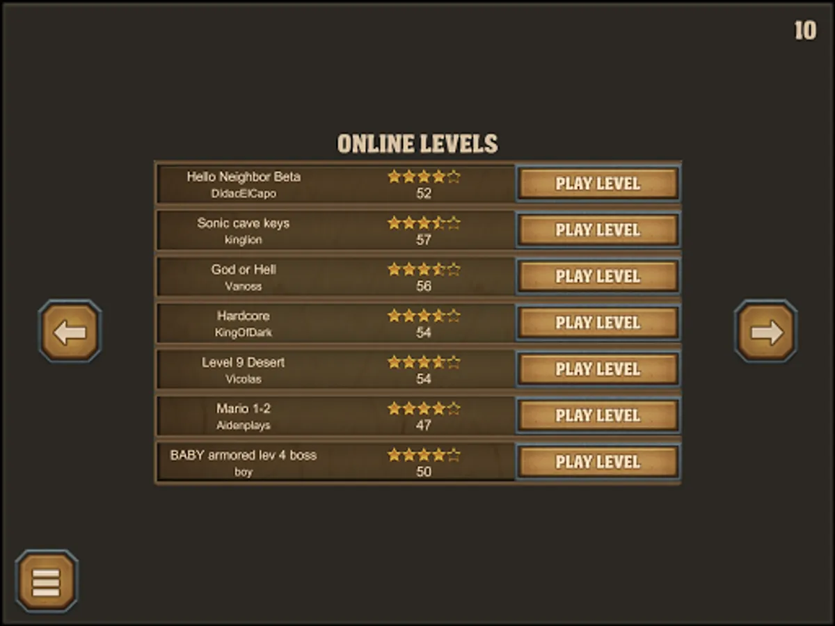 Also you can play online levels created by other players and rate them. The best levels will appear at the top of the list, which will give an opportunity their authors to become famous! Make the game of your dreams, it's simple!