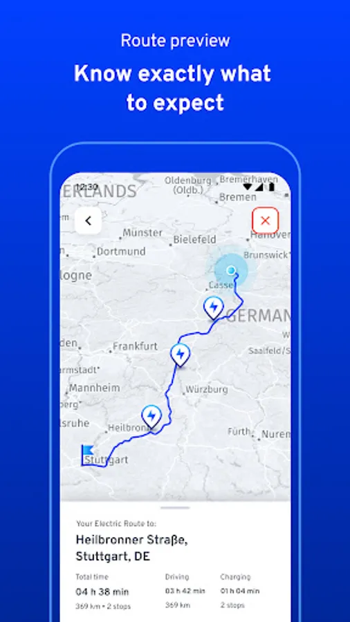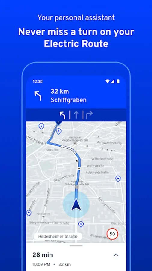 Navigation for electric vehicles has never been easier. Electric Routes is your personal assistant and gets you safely to your destination.