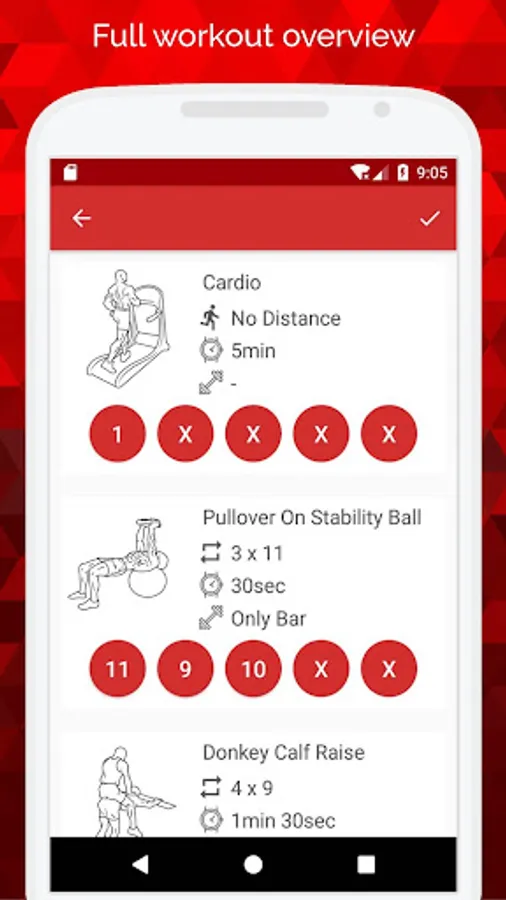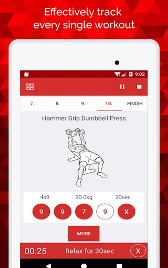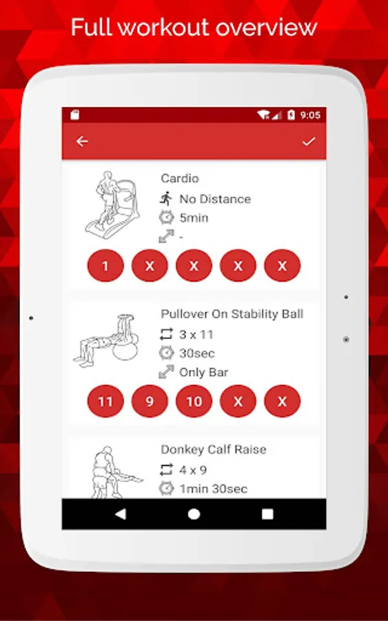 β Workout mode: log all your exercises of a workout by keeping track of the accomplished sets, reps and the weight used.