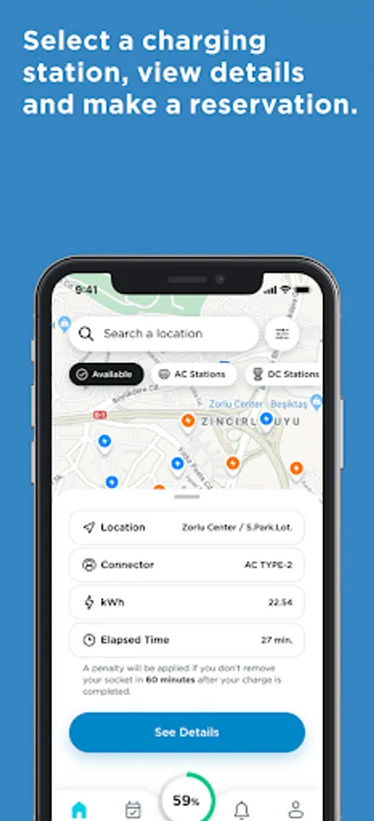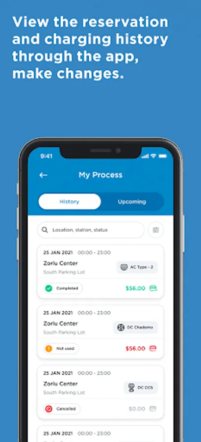 View charge history and upcoming bookings via the Electrip app and make changes.