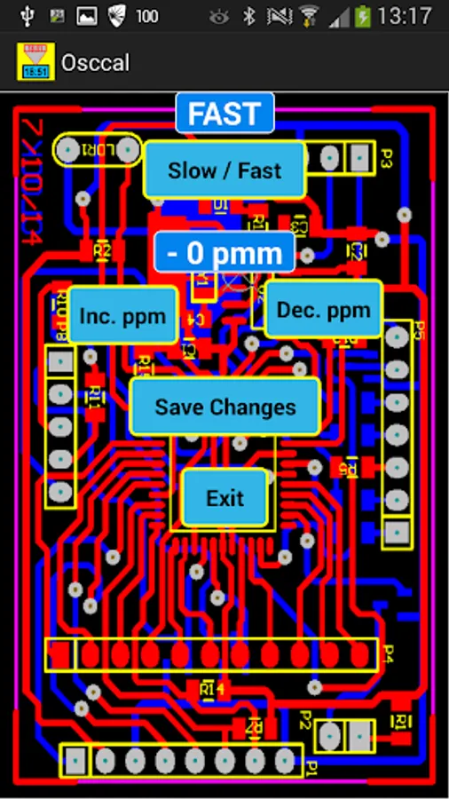 Calibration of clock oscillator by app.