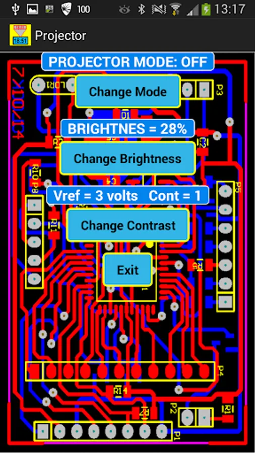 Projector contrast set via app.