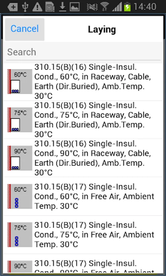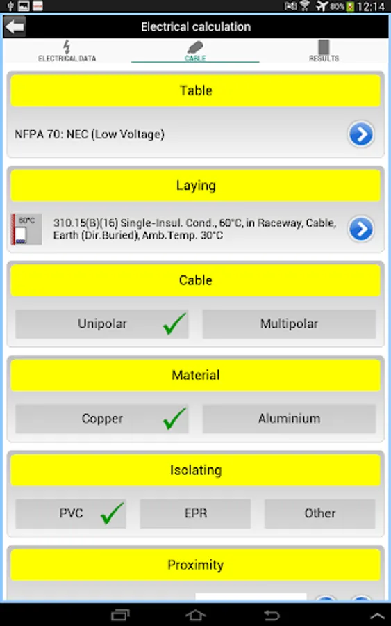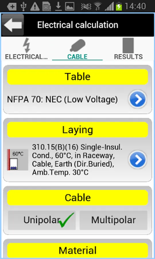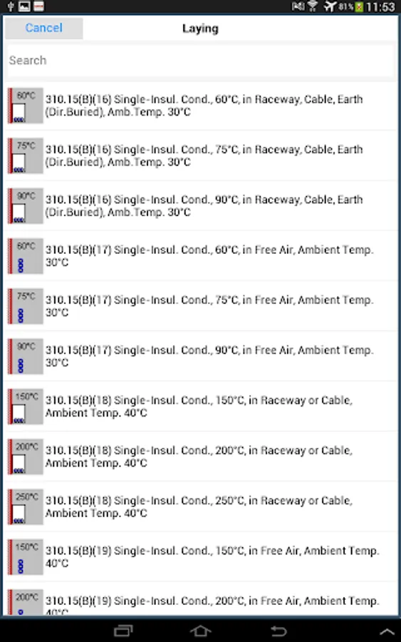 Allows a fast calculation of the current absorbed by a load in low and medium voltage, the dimensioning of the electric cable, the verification of the voltage drop and of the working temperature of the cable. The App provides the freedom to set any voltage and frequency (50-60 Hz, DC) power supply, the load type (three-phase, single phase), the power factor and the ambient temperature. There are multiple International low voltage installation tables (CEI 64-8, IEC 60364, NF C 15-100, BS 7671, UNE 20460, NBR 5410, NFPA 70: NEC) and as many for medium voltage.