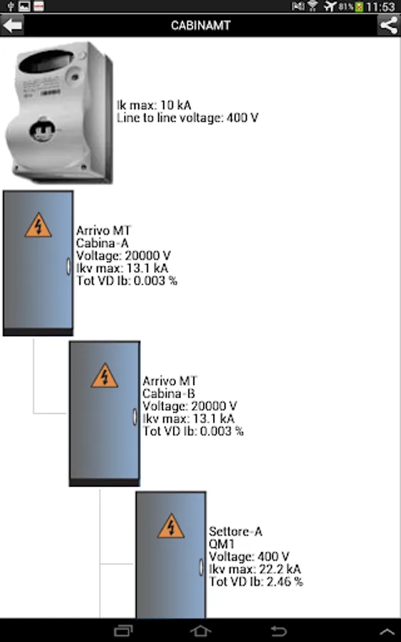 App required for installers, designers and electricians, who wish to have at hand all the tools necessary for a correct dimensioning and verification of the electrical plant. Now you have all the design data available in the places where you need an immediate evaluation and control.