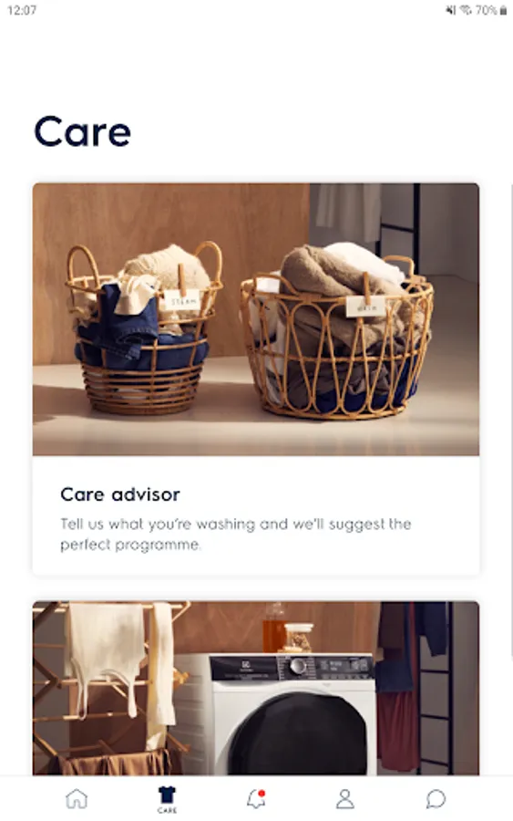 For example, start your laundry cycle remotely, find information on care labels and advice on how to clean and keep your garments looking like new for longer in our Care Advisor.
