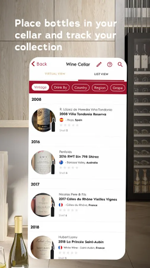3. STORE - Place bottles in your virtual cellar and keep track of your collection