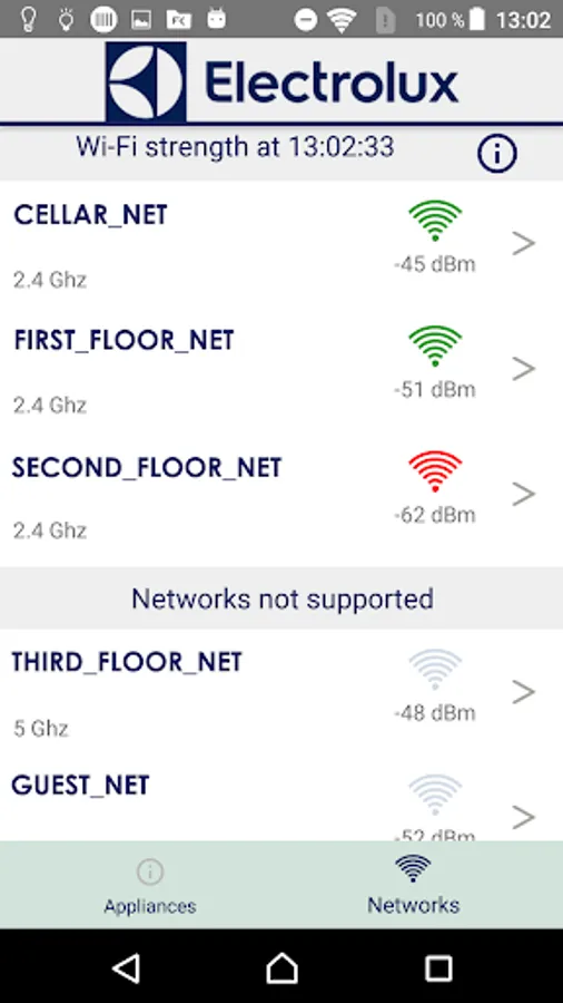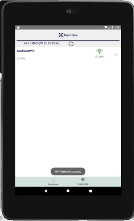 This Electrolux App is for troubleshooting Wi-Fi related issues (such as network reliability and strength) on connected appliances. It provides features typically found useful by technical support engineers.