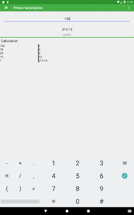 A prime number is a number that is only divisible by one and itself. This app calculates all prime numbers that fit in the entered integer. e.g. 56 gives 2·2·2·7.