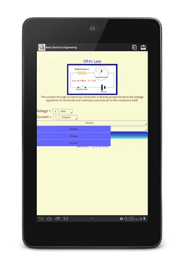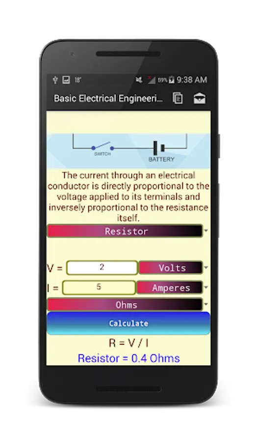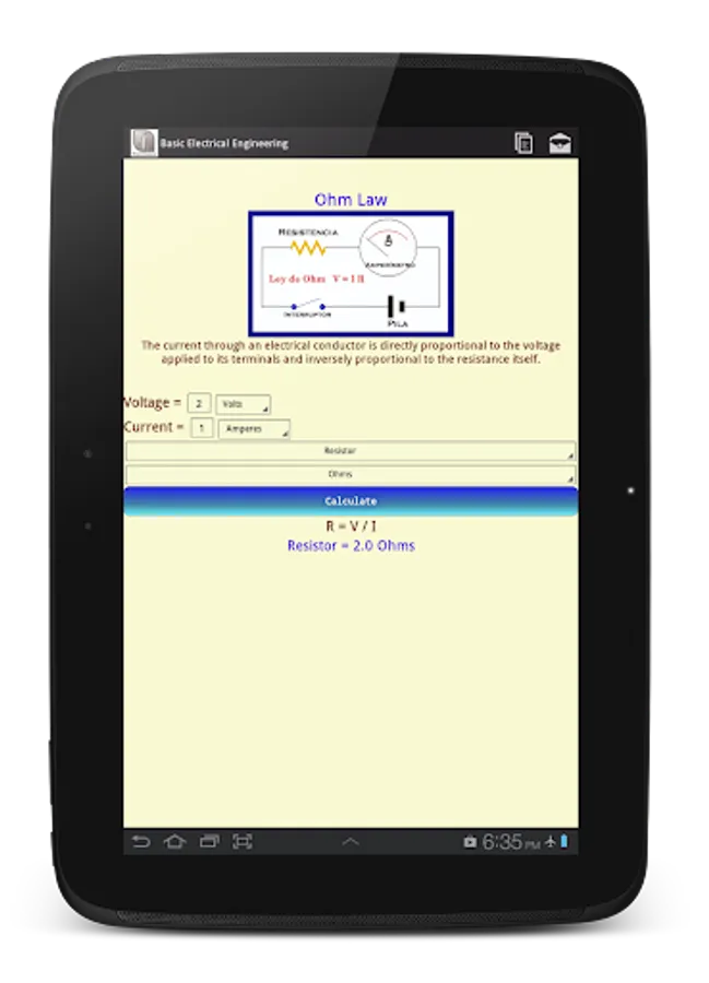 Basic Electrical Concepts allows you to perform basic calculations and have at your fingertips the most important concepts of electronics. Ideal for teachers and electrical engineering students.