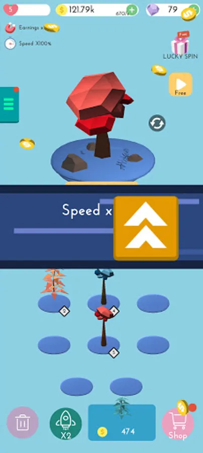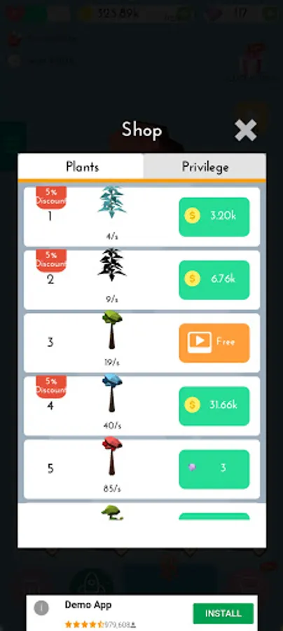 Buy plants and merge them on the plot position, unlock more new trees.