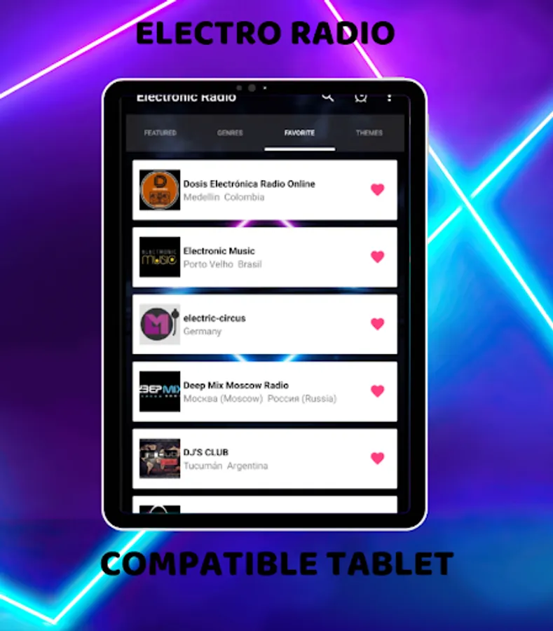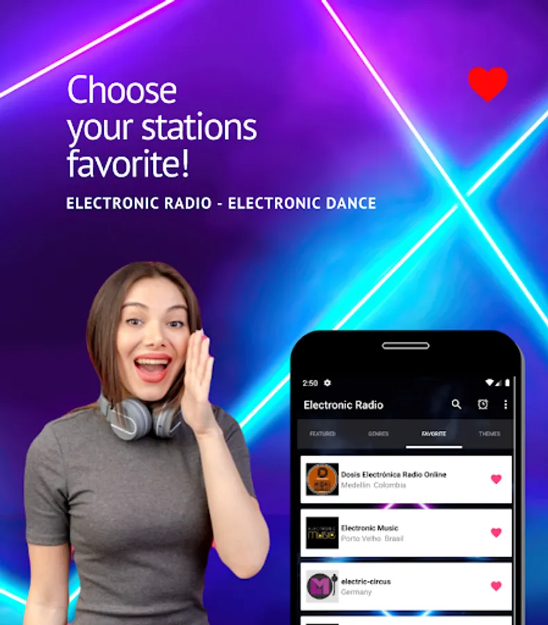 Listen to the best radio stations around the world. Our electro radio app contains radio stations from all over the world! You will not have to worry about not finding content, since we have more than 50 stations working perfectly.
