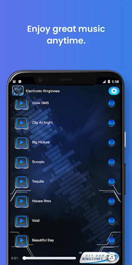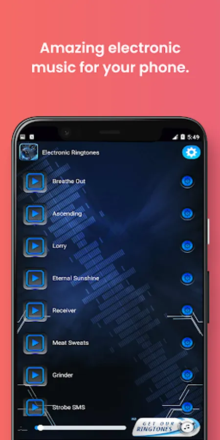 Get into the groove of heavy techno beats with our new Electronic Ringtones app,an amazing ringtone selection of fantastic sounds from the trendiest electronic music. The best modern ringtones on the market are now just a click away!Set different tunes for each contact from your list of dearest people and enjoy these awesome beats every time someone tries to get in touch with you.It’s time to party hard with these brand new hi-tech sounds!
