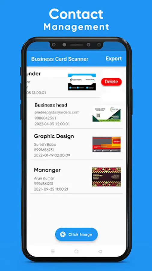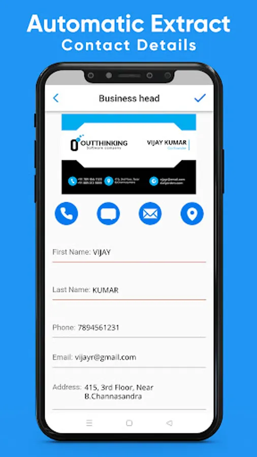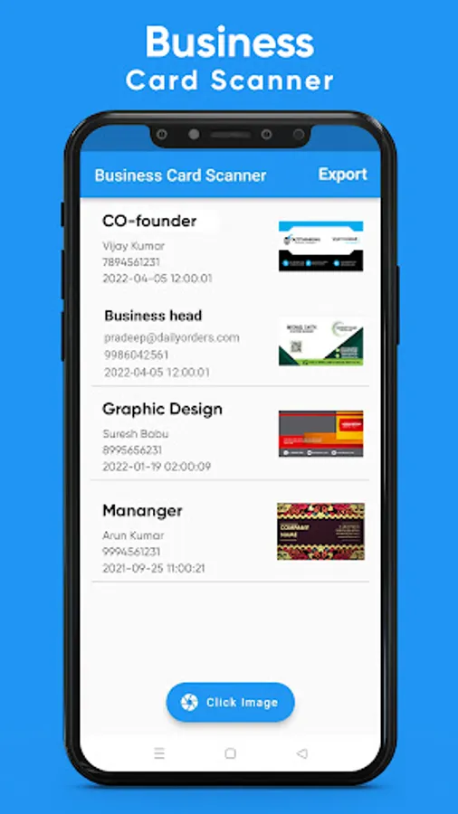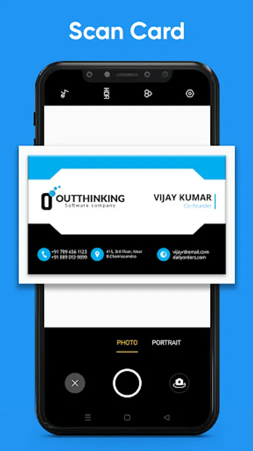 business card scanner allows you to scan physical visiting cards and then convert them into contact, it will scan the card and extract the details automatically by using our advanced OCR algorithms and then it identifies the fields using our AI algorithms and convert into contact. You can also export the contact details using CSV.