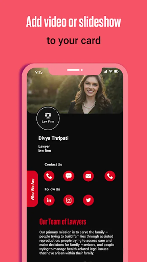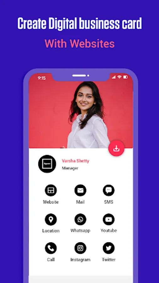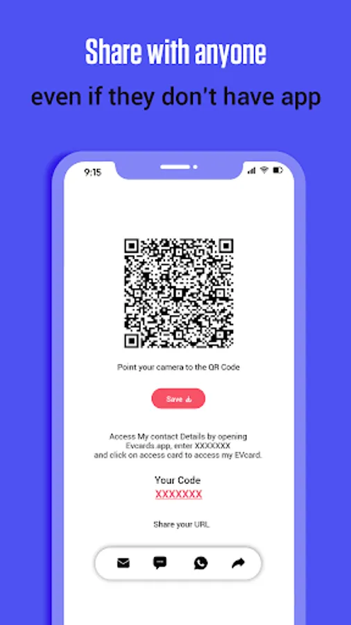 - URL - share your digital visiting card url by email/whatsapp/sms