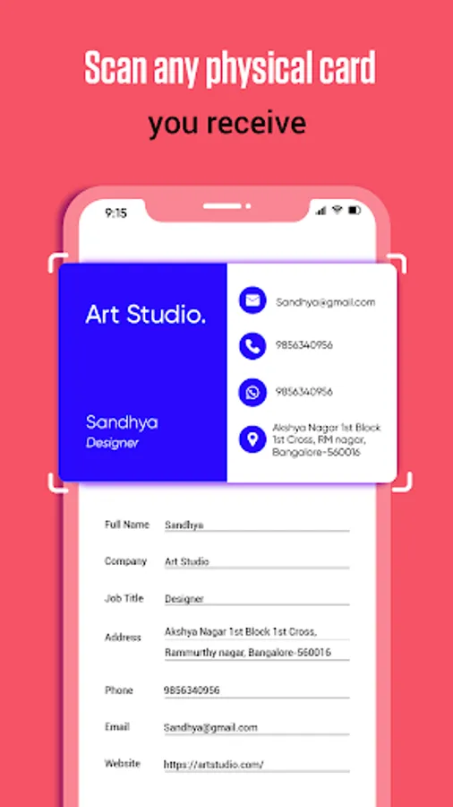 - Scan - you scan business card using this ocr visiting card reader app also it works as business card organizer