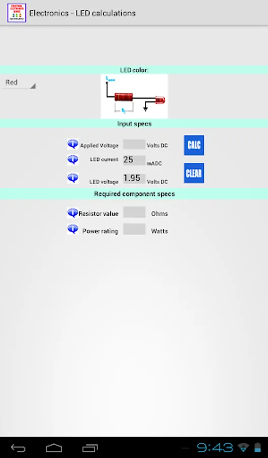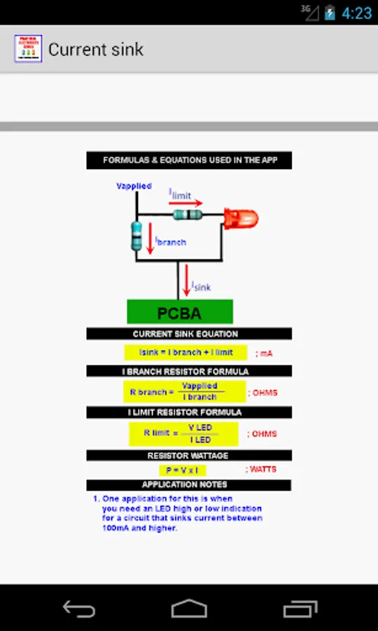 An app to calculate the value of the voltage drop resistor and power rating in a series connected LED. It also has the option to calculate the value of a branch resistor in the case of a circuit board that requires large sink currents. You can use this calculator to get the value of the branch resistor. Why would you need an LED in that case. You want a visual indication ON/OFF or HI/LO.