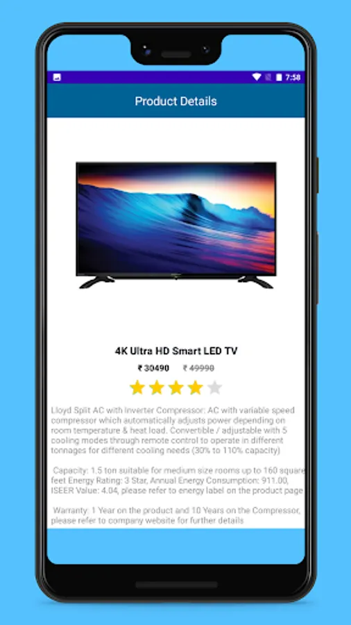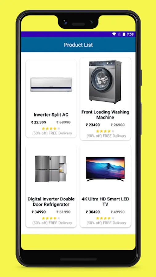 App has created a user-friendly mobile application that allows users to effortlessly explore a diverse selection of products. The app provides a comprehensive list of products, accompanied by their specifications, enabling users to easily view and choose their preferred items. This app offers a wide range of electronic devices such as televisions, fridges, smartphones, and solar panels.