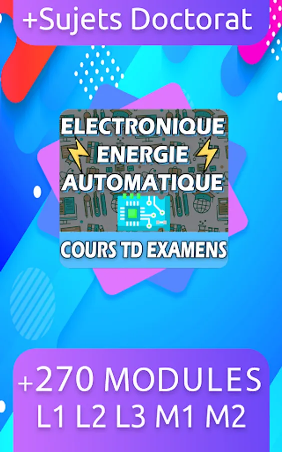 this Application is a dynamic library contains electronic courses, electrical energy, automatic. and TD and corrected exercises for all years of license and master EEA also and corrected exams, mimeograph, summary, and you can download all the decoments.