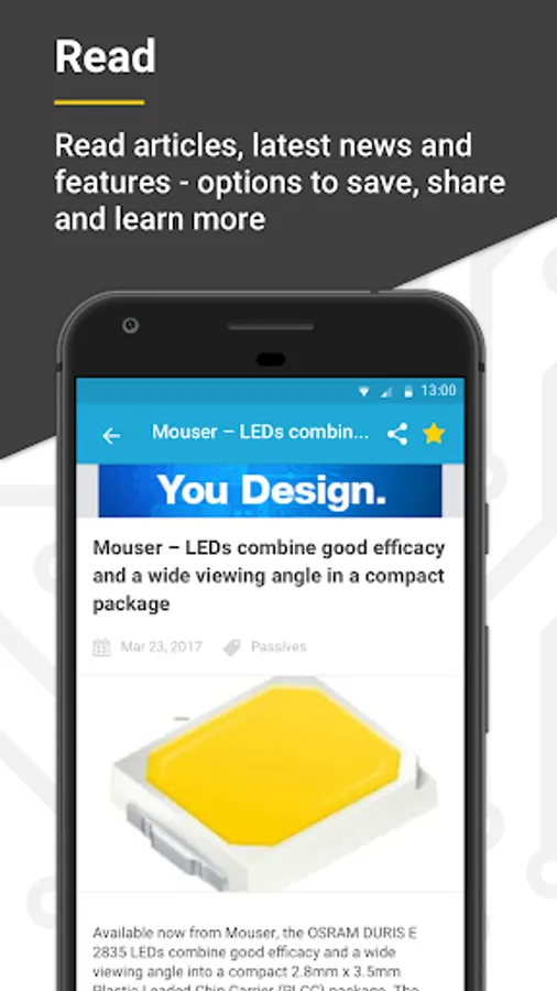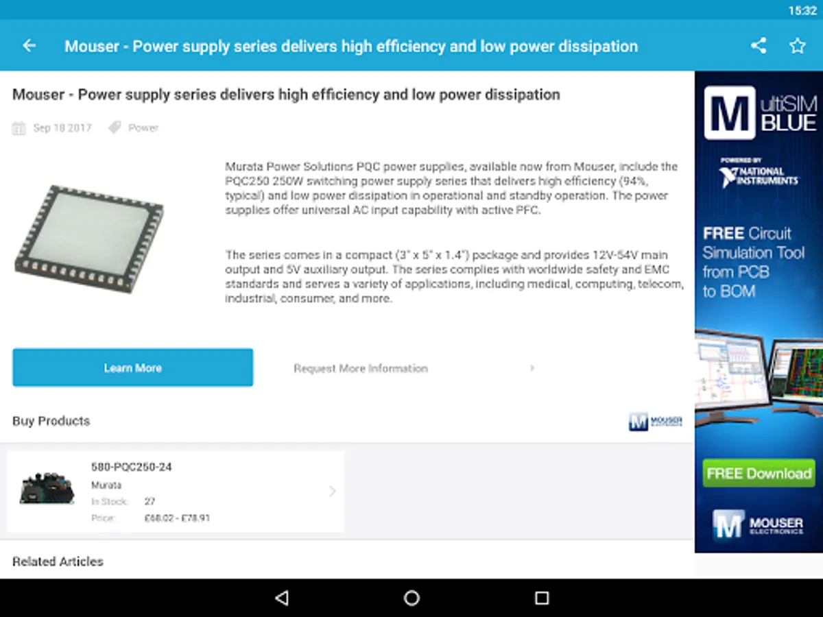 This electronics news app for Android is the first to update you on the latest technology news from the global electronics components industry.