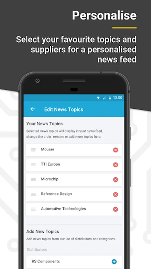 Using the Electropages electronics news app, you will gain unrestricted access to the latest electronics news from distributors and electronics components manufacturers. You also gain access to the latest information, including exclusive content from the following companies and categories.