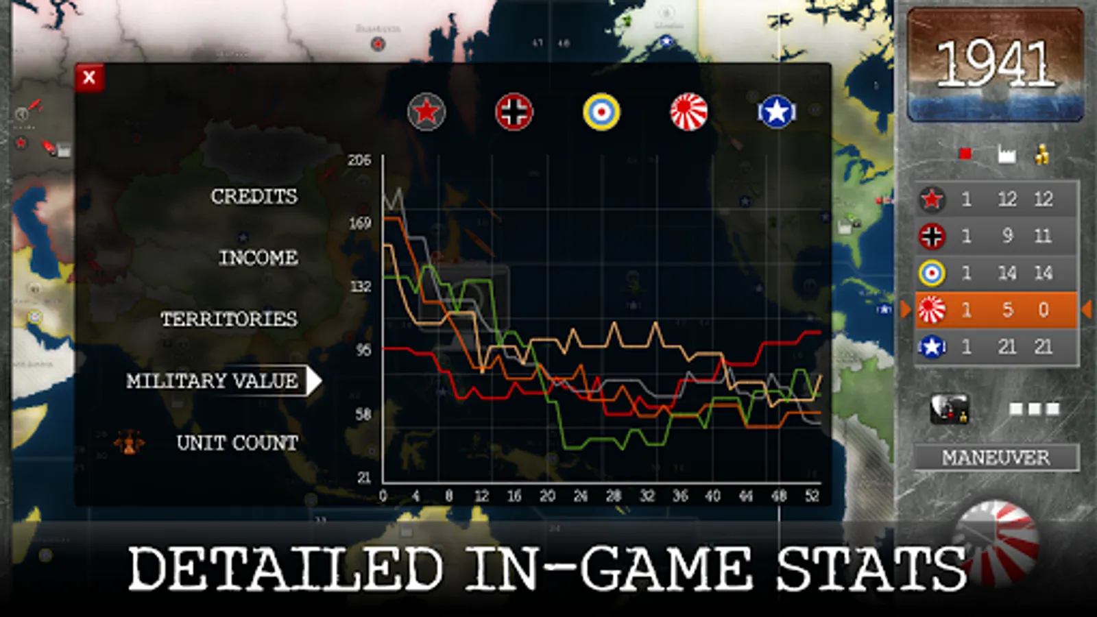 Awesome features include detailed in-game statistics, full replay capability, automatic game saving, custom sounds and legendary music. If you're a fan of strategy board games like Axis & Allies®, Age of Conquest, World Conquer or Border Siege, don’t miss 1941!