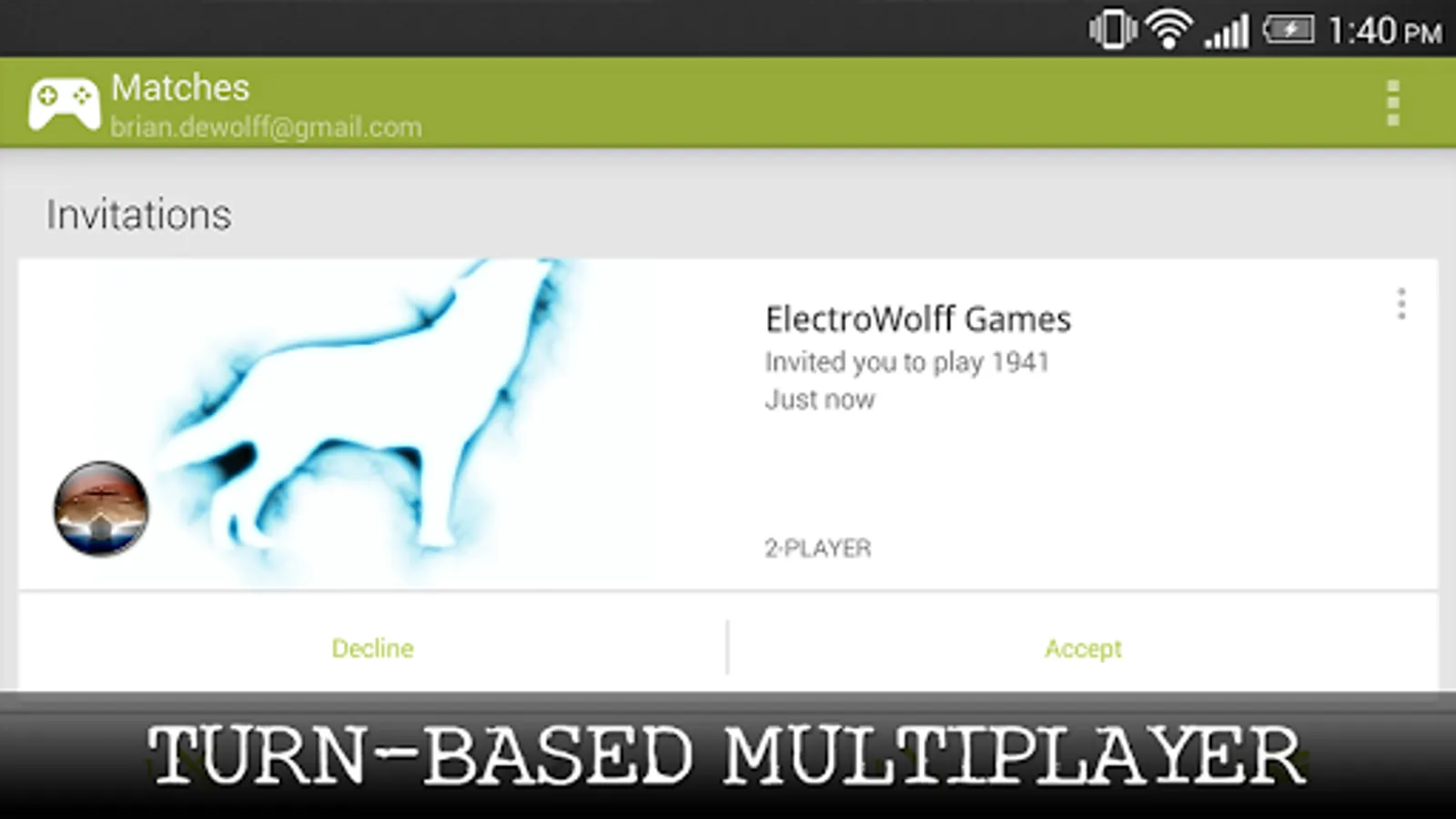 1941 is an Android strategy board game based on the conflicts of World War II between the Axis powers (Germany / Japan) and the Allies (Russia / UK / America). 1941 is very similar to the popular board game Axis & Allies®.