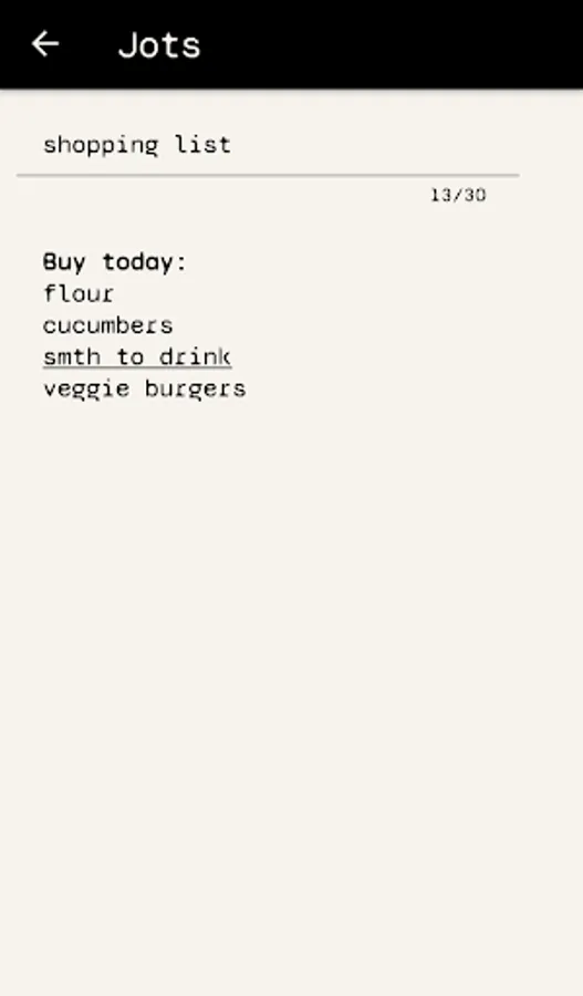 Jots is an open-source minimalistic notes app. It was created by Tadeas Jun in 2021. The app features a minimal UI, which can be personalized via the Themes in the Theme Market of the app.