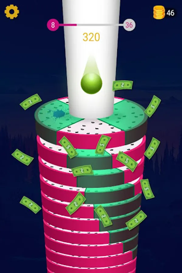 If the ball Stack hits the correct colour stack then the ball smashes the ring and move downwards and comlete your levels easily.