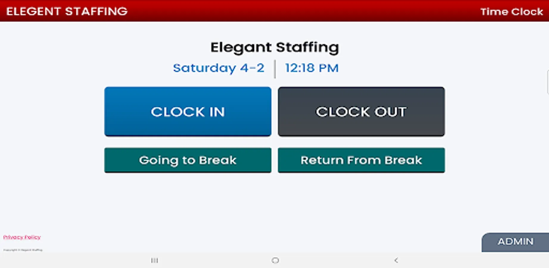 Elegant Staffing is introducing a time-clock app that offers Clock-in, going to break, return from break, and clock-out with 4-digit PIN authentication. This will allow Elegant Staffing's clients to have greater visibility on who works on what and approve timesheets and send timesheets to payroll and billing. In addition, client managers will have the ability to manage their own employees' timesheets through this app.
