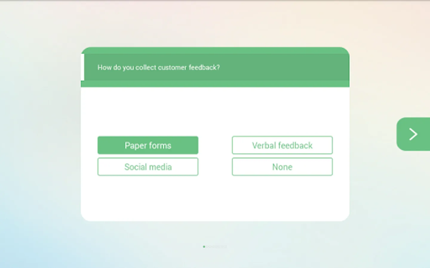 - Restaurant feedback by asking patrons for feedback along with their check or as a kiosk near the exit