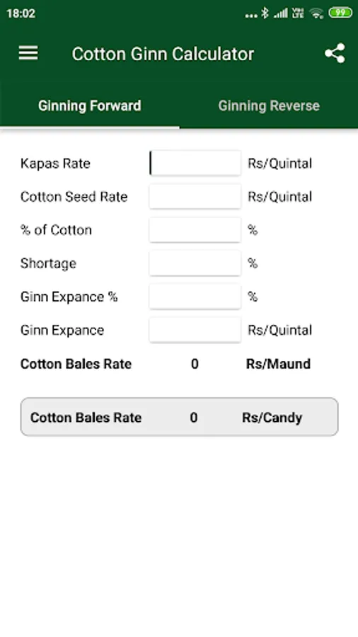 Here, Cotton Calculator application is useful to cost a calculator for Ginners, Traders and Brokers.