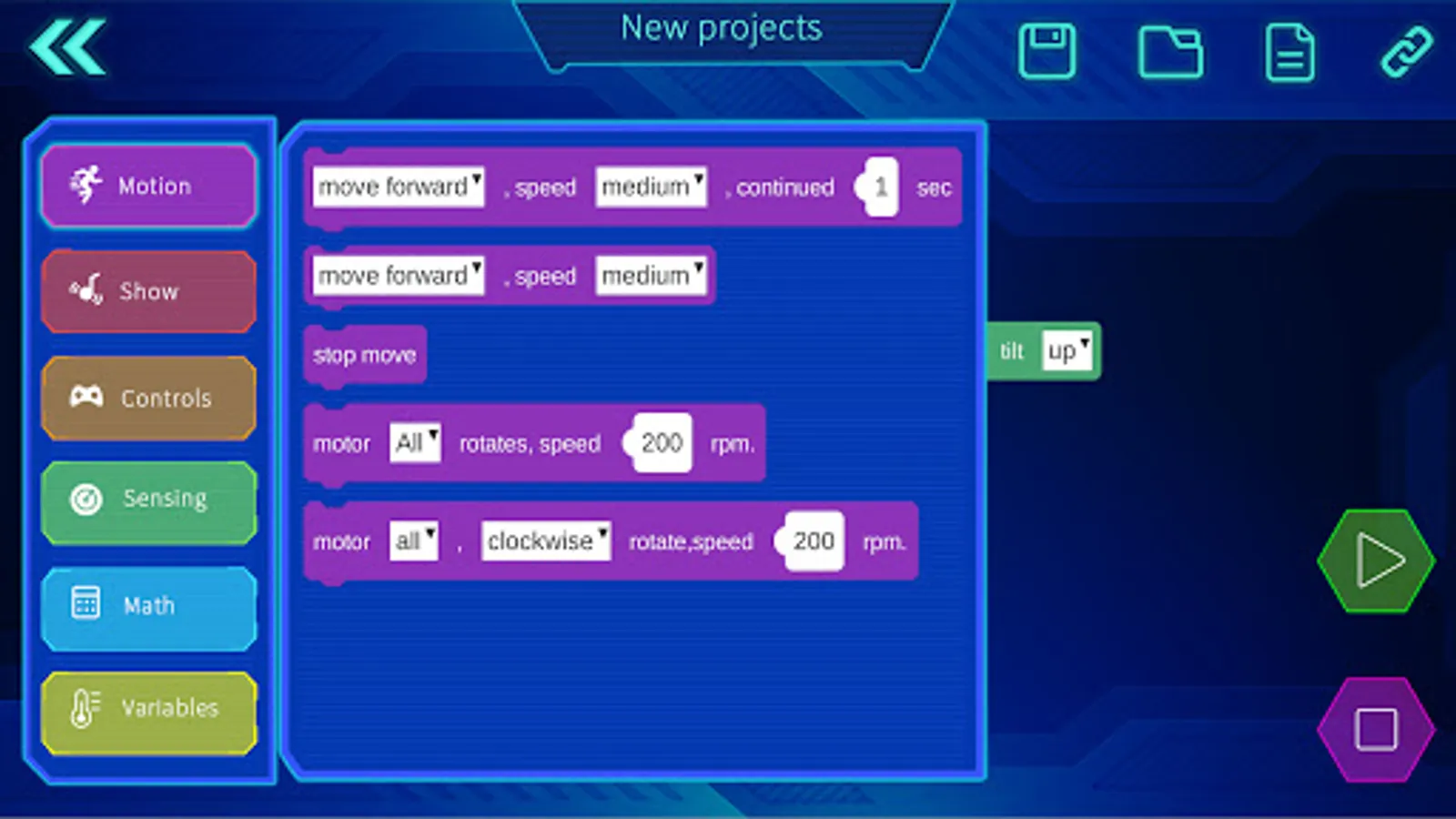 This is a utility app that controls part of Elegoo's Arduino equipment. The app has three main functions, remote control, graphical programming, and DIY command sending and receiving.