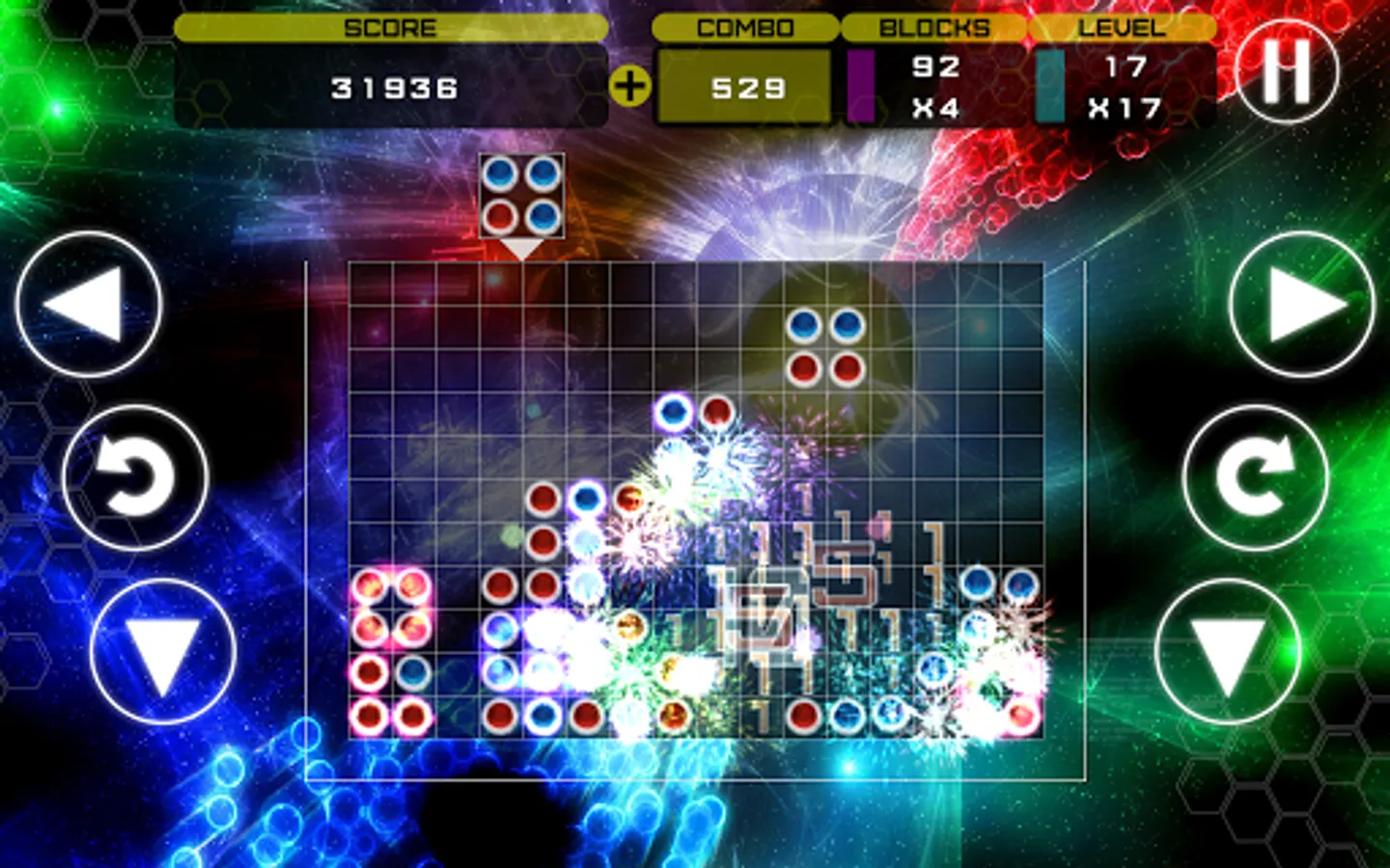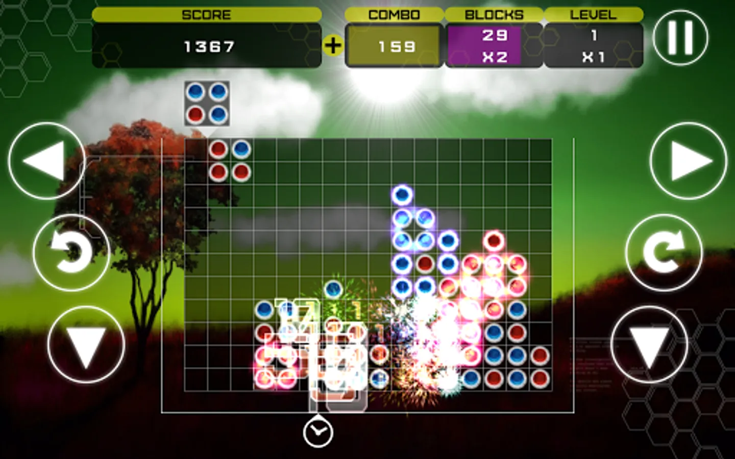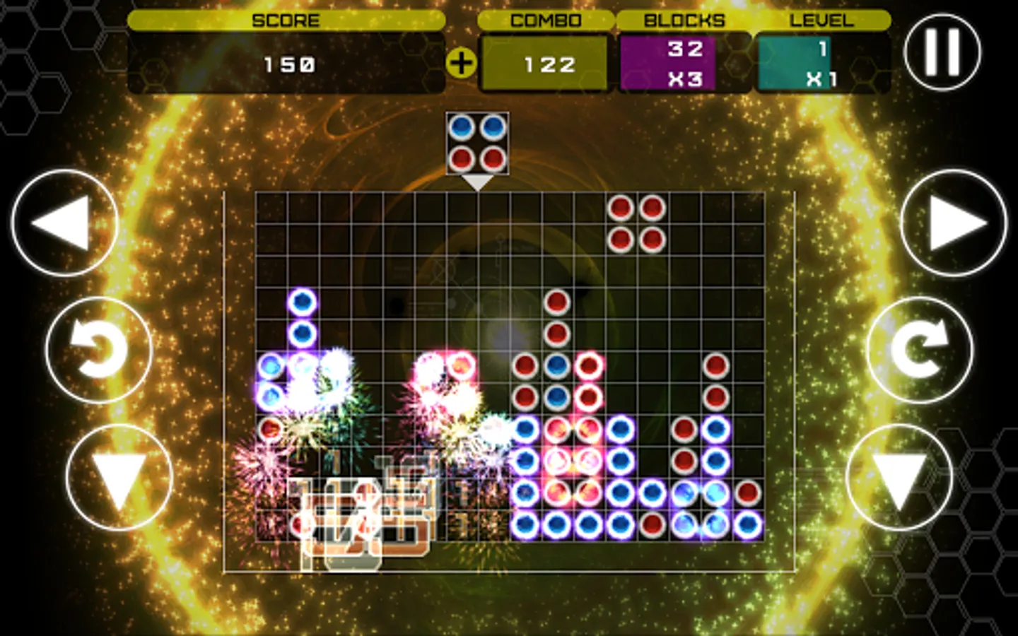 - Clearing blocks triggers stunning fireworks displays!