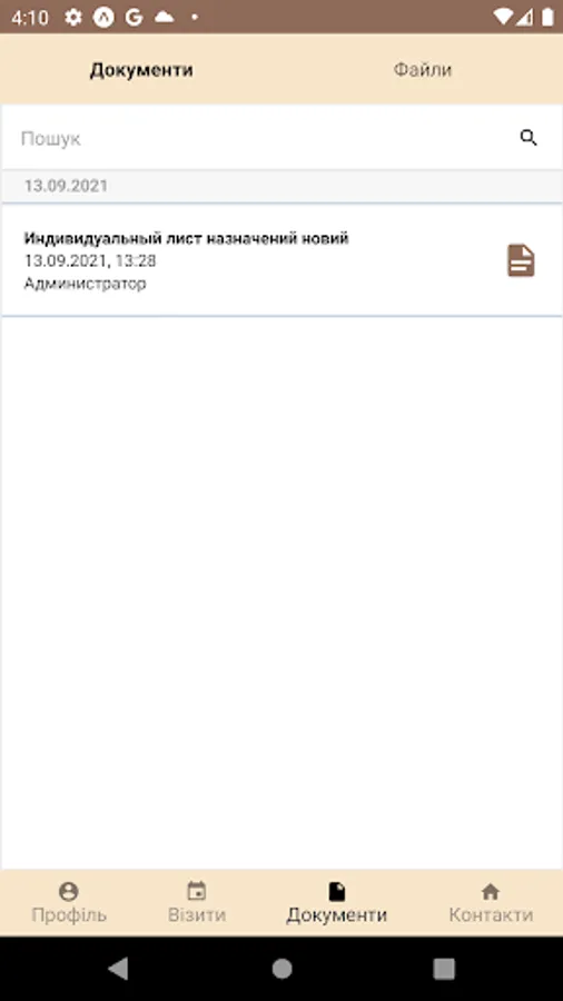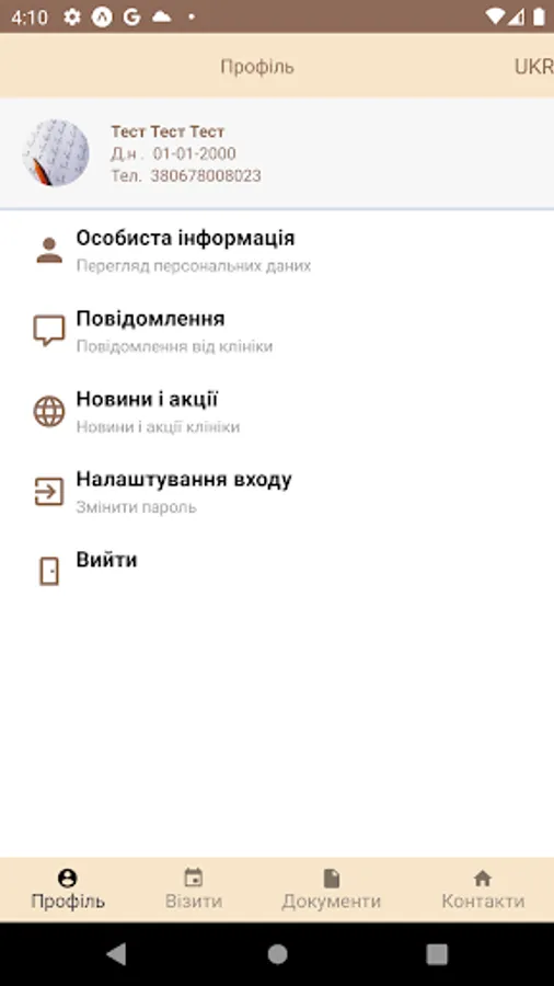 For the convenience of the patient, the app contains all patient`s medical documents - doctors' resolutions, results of examinations and tests, information about planned visits and those that have already been held.