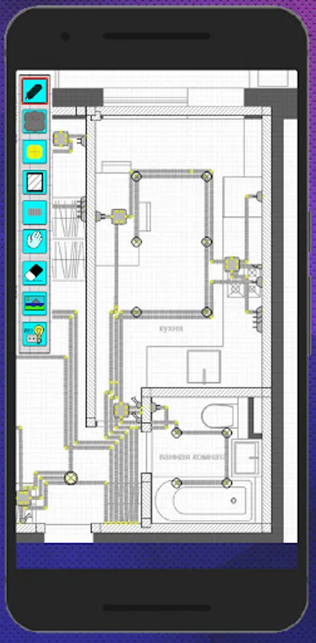 The app helps electricians create a 2D illustration of a ceiling or corrugated floor, install switchgear boxes, as well as sockets, switches and lights. Sketch sketches or make a good work plan in order to come to the object and, according to the prepared plan, begin to implement it.