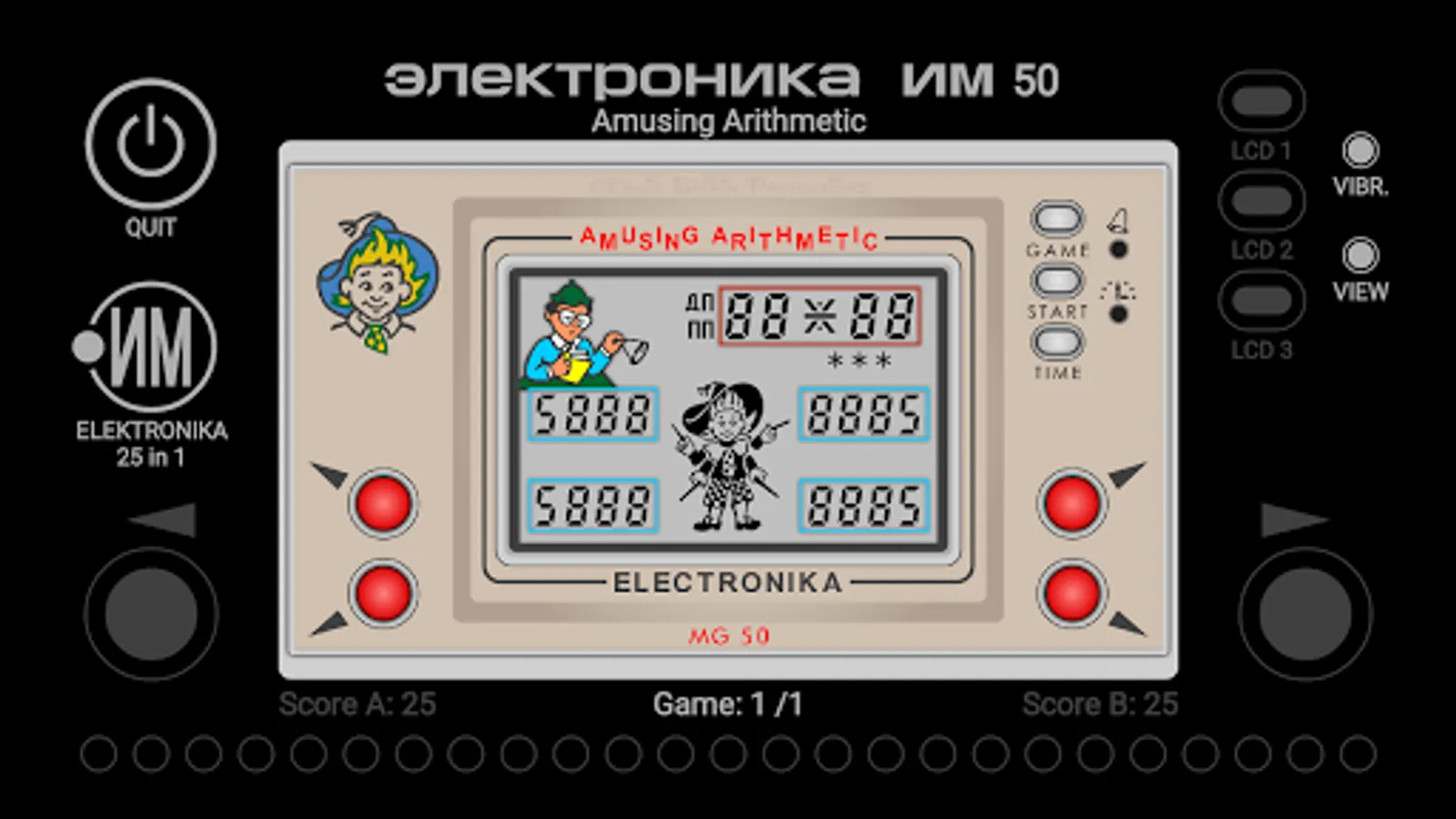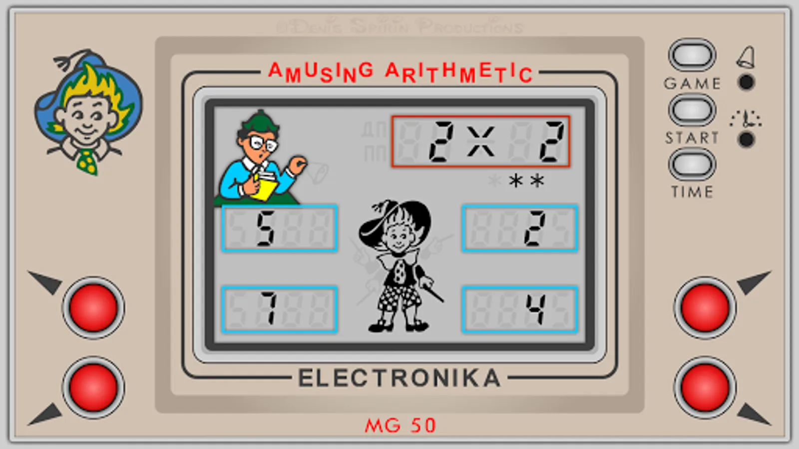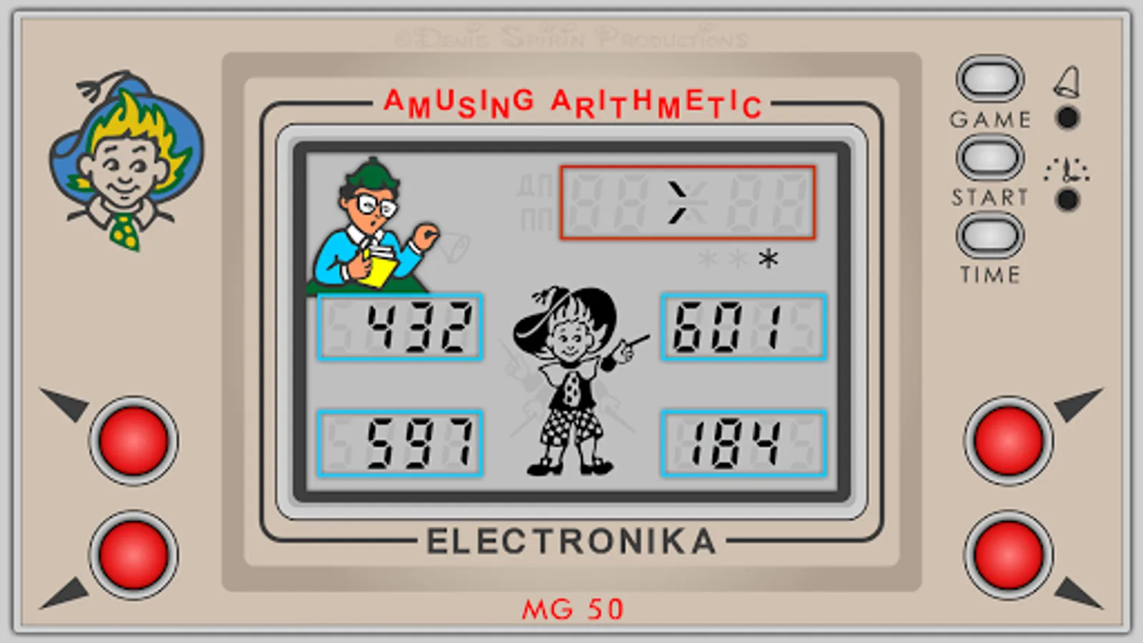 "Amusing Arithmetic" is the unique, one of a kind in the world handheld console. It was developed and produced in the USSR from the late 80s and in Russia until the mid 90s. An electronic game allows you to improve knowledge in mathematics in a playful way, master the tasks of pattern recognition, logical analysis of number values, and the development of counting skills when performing arithmetic operations.